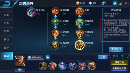 近卫荣耀,可以增加周围800范围友军增加(30+英雄等级*2)点物理攻击和(60+英雄等级*6)点法术攻击.这是什么概念呢?小编这就来给大家算一下这个装备到底有多厉害。