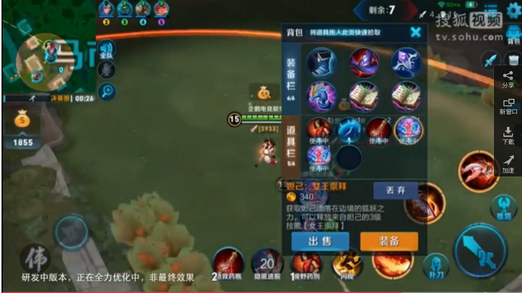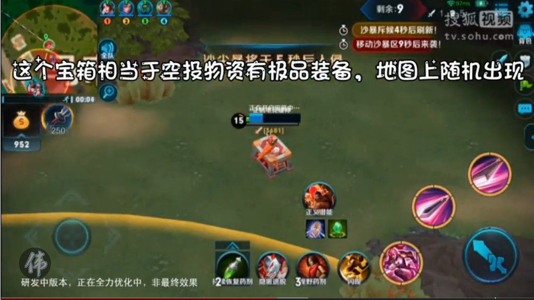 从截图能够看出,其保留了吃鸡最核心的元素,毒圈和捡被击杀英雄的装备。整个地图要比传统5V5模式大很多,开局前允许用户禁用三个英雄,然后队伍被随机传送至某处。玩家可以打怪赢取金币,队友也可以救助受伤队友。虽然目前还只是测试版本,但整体完成度已经非常高了,期待下一个大版本更新,天美能把这个模式加入其中。