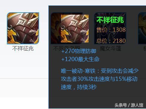 出场率第三的则是不详征兆,这个装备应该是对物理型英雄尤其是射手克制最大的装备。物理防御和生命都加得非常之高,并且这个被动还会大幅度降低射手的输出能力。一般出了这个装备的话,射手是很难黏住你的。