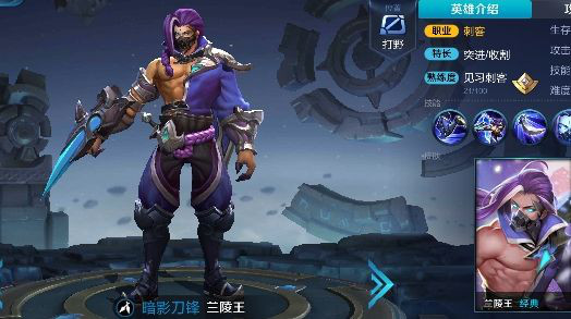 兰陵王能够在众多刺客中脱颖而出,不仅仅是因为他的外表同时还有他的潜在移动速度,很好的切入,只要你不是被团战先手的法师强行控制住,你就能够很好的扫掉脆皮,并干净利落的完成大满贯。而且这个英雄并没有多贵,只是铭文配套起来比较困难。