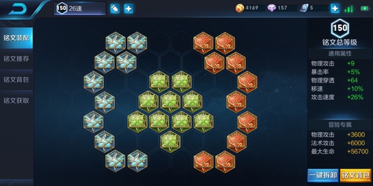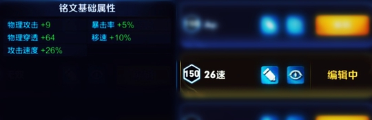 在走边路的情况下,因为不叠攻速打野刀,依然适用26攻速铭文,为的是前期快速到达75攻速,这个没什么好说的。