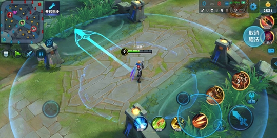 TIPS:因为1技能范围内有敌方英雄才会显示漫游射击范围圈,所以只要显示漫游射击范围圈, 一技能就可以瞬放攻击敌人,但要注意瞬放不会攻击草丛隐身单位,所以漫游射击范围圈只能显示附近草丛有敌方英雄但不能确定具体位置。