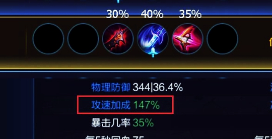 因为我们出了打野刀叠攻速 而这个打野刀是不计入我们的三件核心装的 出完核心装就可以卖掉 前面提到无铭文总攻速为147,所以我们只需要多5%攻速铭文 就可以搭配核心三件套 达到152攻速。
