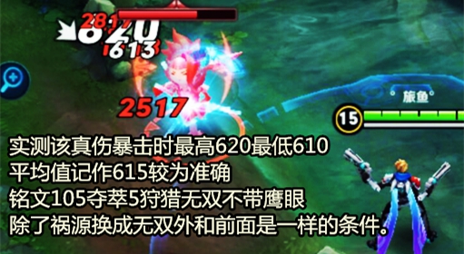 所以铭文最终我选择5夺萃5狩猎,10鹰眼,10无双;没有坦克能吃得消5秒的暴击真伤。