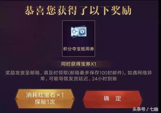 这个抽奖获得英雄碎片和皮肤碎片的概率倒是蛮高的,当然了,最高的还属于积分夺宝抵用券,一个积分夺宝抵用券相当于60钻石,可到钻石抽奖池里试试运气,至今这个活动还未发现有欧皇的降临,所以小R玩家千万别去试水,有这个试水的都点券不如老老实实买个皮肤就好!