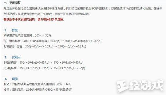 体验服更新三名英雄改动 今后或取消体验服调整通知