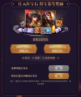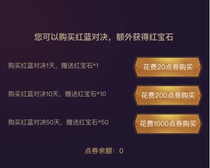 如果红宝石消耗完毕的玩家,就需要用点券进行兑换了。除此之外,活动结束后,如果有未使用的红宝石和宝券都将失效。