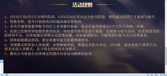 3 、本次开通顶级豪华账号均在王者荣耀体验服,将会在抢号结束后5个工作日内统一开通。