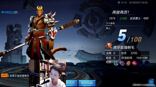 王者荣耀体验服100人模式?虎牙大锤哥孙悟空排第五,只因这个英雄!