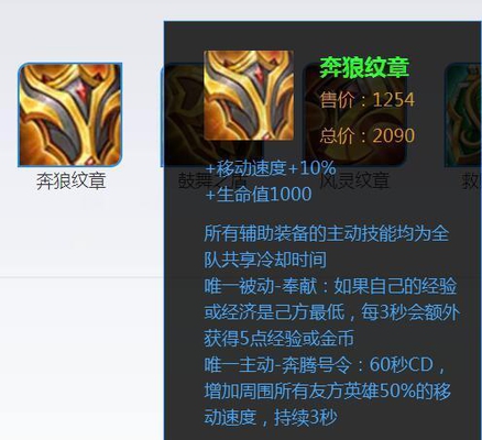而奔狼纹章就稍微尴尬了一点,它的主动效果是提高友方英雄的移动速度,其实这种的话关键还是和队友之间不太好配合,不可能在用的同时高叫一声,兄弟们冲啊。如果是五人配合还相对好一点。