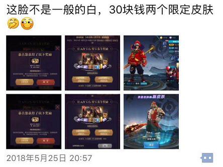 比如仙女我朋友圈里有位欧皇,只花了30块,这两款限量皮肤就到手了!