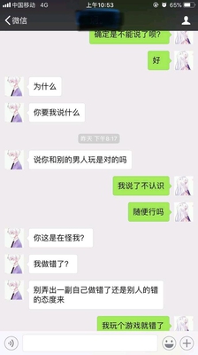 从妹子的聊天截图上来看,她就是没有和对象一起玩游戏,而是随便拉上个路人就被对象控诉为“精神出轨”,并且她还没有和路人说过话。可以看见,她的对象是真的有点小气,并且这种说法是真的有些过分了,只是没有一起玩游戏嘛,又不是什么大不了的事。