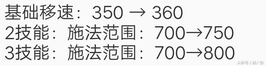 妲己这个新手英雄现在已经越来越冷门,胜率也偏低,而这次官方给她加了移动速度以及二三技能的施法范围,让她可以在很远的距离就先手到对面英雄了。而切入和逃跑也会更快,稍微会强势一点,但是应该还是进不了主流法师的舞台。