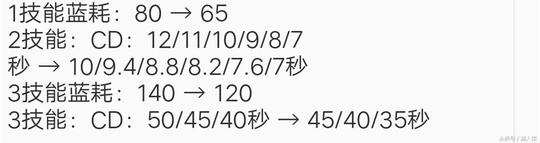 高渐离以前其实是一个主流法师,但是在被削弱几次之后就默默无闻,官方这里是有点打脸了,又把他大招的cd给增强了一些,同时其他技能的cd和蓝耗也有一定的加强。那么他能不能回到主流法师的行列就看之后的发挥了。
