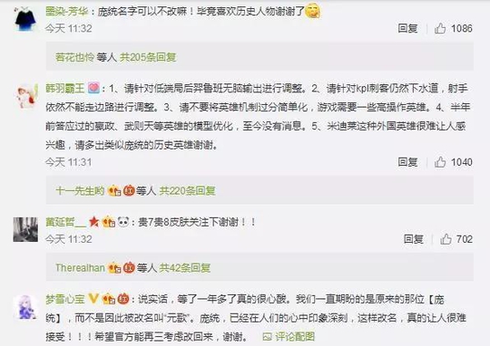 我们可以看到在Donny发出这个优化信息之后,广大玩家小伙伴,并不是非常在意这种优化,毕竟天美做过太多这种事情了,大家都习惯了,无所谓,爱怎么改怎么改。更多的人是在吐槽,平衡性啊,传统刺客的登场率啊,要求给元歌(庞统)一张改名卡啊,说Donny说话不靠谱啊,这样的吐槽。这估计也是他始料未及的吧。哈哈。