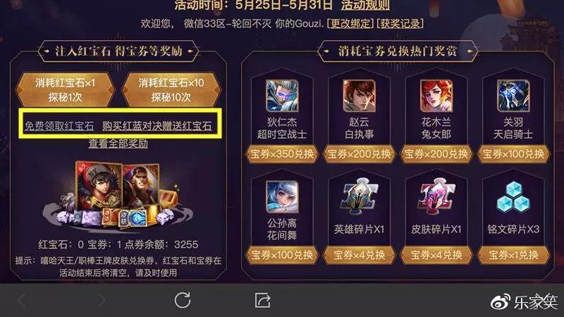 每天登陆可以领取一颗“红宝石”,也可以通过点券购买“红宝石”,每一颗红宝石可以进行一次抽奖。
