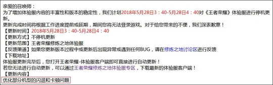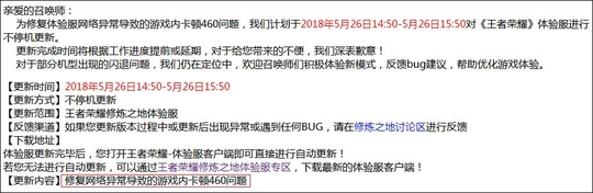 其实天美也是努力的在为游戏体验努力着,这不,前几天体验服就更新了一次,内容没有其他,只有一条,那就是修复460问题。