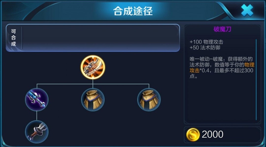 第五名,破魔刀,这个装备在提升攻击的同时,增加一些法术防御。而目前的对局中,大部分时候只有一个法师,因此攻击型英雄大部分都不会出法术防御装,而冲锋在前的战士坦克们,出魔女头蓬又比这个好多了。