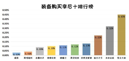 大家都知道王者荣耀中的装备很多。其中大部分装备都是比较常用的,但是也有一些装备,它们的出场率却很低,我们来看看官方王者荣耀数据酱发布的一个榜单吧。到底哪十件装备是最少人出的呢?