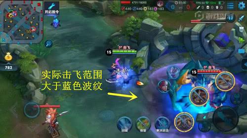 主宰的击飞攻击以主宰为中心,实际范围比显示的蓝色波纹还要大。