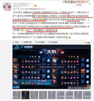 馒头从这位玩家的微博下也发现不少人都有相同的看法,甚至有玩家说自己二十连跪都是因位匹配到了安卓队友,尚且不说他对不对啊,但这不能以偏概全,不管用什么系统都有不带脑子的队友,你觉得安卓坑了你,同理安卓碰到的那种贼坑队友也是ios的,不管怎么说双方都有神坑存在,并且这位玩家为什么会有这样的想法,说白了还是因为安卓玩家的基数大,所以玄学仅仅是玄学,看看就好,那么其他的小伙伴们是如何看待的呢?可以留言告诉我们!