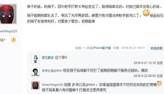 妹子的话,玩猴子,因为射手打野太考验走位了,就用简单点的。对自己操作没信心的话,猴子前期别管队友了,等出了无尽再参团,眼里只有对面法师射手就可以了。铂金钻石的猴子发育特别好,对面很少管你,后期超神