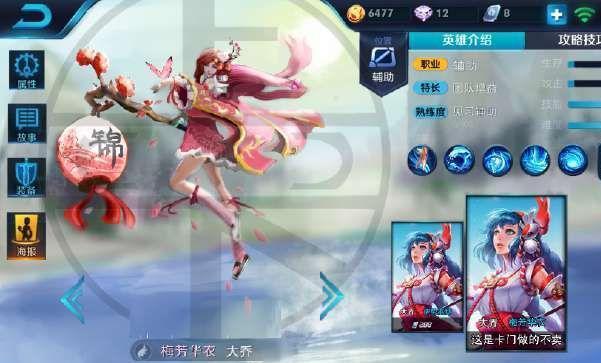 大乔自上线后真的就没有再出过皮肤了,好不容易在团战精神活动中得了第一,不然真不知道什么时候才有皮肤!阿白认为这款皮肤真的很符合大乔,中国风气息以及色调,简直天衣无缝!桃花装阿白个人认为大乔会比军师穿的好看些(并没有贬低军师的意思)