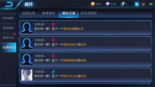 妹纸和往常一样登录游戏账号,但是发现自己游戏账号里面的6000点券只剩下了个位数字,这下妹纸查了一下礼物中心,发现自己游戏账号在“赠送”别人礼物。妹纸明白这到底是怎么一回事了,妹纸对“收礼人”也不薄,平时都说自己没钱吃饭之类,妹纸都给了。