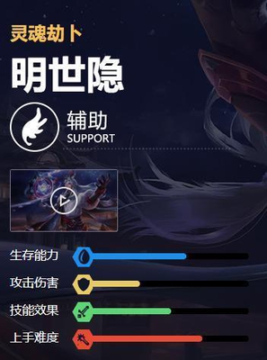 接下来小编给大家介绍一下小浪浪明世隐的技能以及被动的恐怖,先来说一下你明世隐的大招,就是牺牲自己来保护队友,简直就是舍己为人的精神。不不过在后期明世隐的装备上可以完全的为队友提供充足的血量。明世隐在后期自己本身的伤害也是非常的高。明世隐的一技能和二技能的主要功能就是为队友增加防御力以及伤害的加成,而对于敌人来说并不是那么的理想。对敌人来说就是一种恐怖的伤害。一二技能不仅能降低敌人对友方的伤害以及眩晕时间,还能完美的使敌人减速以及达到眩晕敌人的效果。简直就是王者峡谷里一大bug的存在。无人能敌,完美辅助。