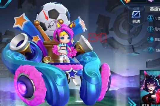 这里的关键就在于皮肤游戏内模型中隐藏的一个彩蛋。在蔡文姬舞动绿茵皮肤模型中,新坐骑拉风又嚣张。坐骑顶部有一个旋转的足球,细心的小伙伴会发现,在足球上有一个“禅”字加上半边爱心的签名。也就是皮肤背景故事中包含有的签名冠军赛足球彩蛋。