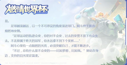 在皮肤的背景故事中,刘禅是一个横空出世的天才守门员,在第一次赛场上代领队伍夺冠,然而之后却经历了九连败。当一场比赛失败后,他碰到了啦啦队队长蔡文姬,蔡文姬拿出了他夺冠时的足球,刘禅签上了自己的名字。