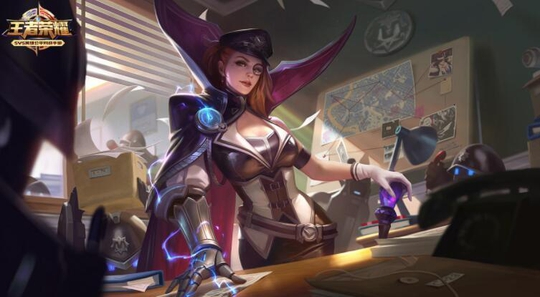 还有一个是米莱狄的伴生皮肤精准探案法,右侧墙上有两大黑帮教父的照片,原因自然是米莱狄的皮肤背景定位是警方势力,与刘备和黄忠的皮肤背景相对立。