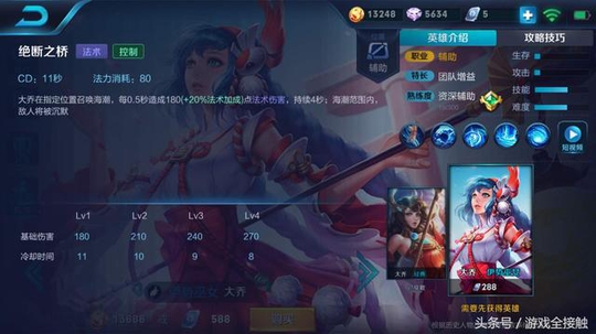第三位——大乔:这位大乔辅助的伤害能力不是直接体现在伤害上的,而是体现在她的近乎无限的续航能力来持续作战输出的。相信跟她打过的玩家们都清楚,她“皮”起来没个3—5个人是抓不死了,你突进?我1技能弹飞你;你想放技能?3技能沉默你;你想抓我?2技能一个圈瞬间满血回城,加着速跑回来接着跟你耗,让人不胜其烦。两个人就想抓我?一个大招教你做人。大家说她的这种打“伤害”的能力强不强?