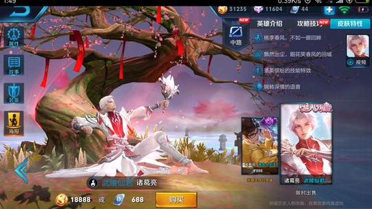 创意灵感来自于三生三世十里桃花,这原画可以说是全英雄第一有没有?但是进入游戏的特效……一言难尽,且不说当前版本诸葛亮弱势难以上场,便宜的黄金分割率比他脸好看,特效还不明显,容易迷惑对手,为什么要买这个情人节限定?哦对,幸亏它是限定,要不然又要坑很多人了。