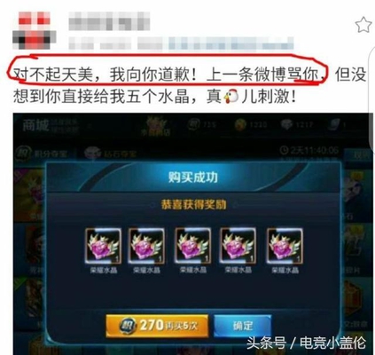 王者荣耀:玩家充2000抽武则天,抽到5个荣耀水晶,向天美道歉