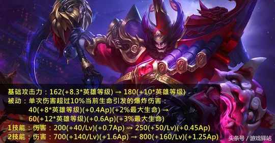 钟馗是一位主定位法师,次定位战士的英雄,自上次加强后胜率有所回升,官方考虑到钟馗与其它法师相比前期伤害和清兵能力过于偏弱,因此这次大幅加强了1/2技能前期伤害,虽然下调了AP加成,但后期伤害依旧比未调整前要高,另外还提升了被动伤害和基础攻击力!