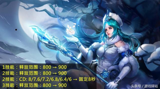 王昭君更改了大招释放方式后热度下滑,为了让表现一般的王昭君在对线时有更安全的输出空间,官方决定上调全技能100点施法范围,同时将2技能后期的CD上调,削减了控制频次,总体来说此次调整后王昭君的POKE能力大幅提升!