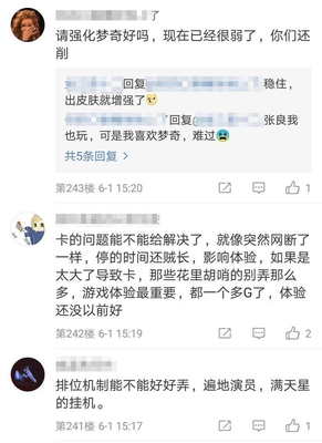 网友2:“卡的问题能不能给解决了,就像突然网断了一样,停时间还挺长,影响体验。。。(同感)”