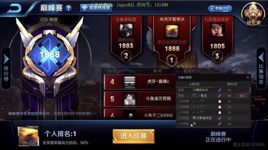 如果能在样包括:民间大神、主播、职业选手的巅峰赛拿下巅峰赛的第一无疑是对自身实力最好的证明。所以在巅峰赛开启之初竞争就非常激烈,谁也不甘心落后,而最近国服第一杨戬虎牙主播寒冰就做到了这么一件让普通玩家不敢想象的事情一人力压9999名最强王者以1888巅峰赛积分夺得第一,成为当之无愧的“头号玩家”