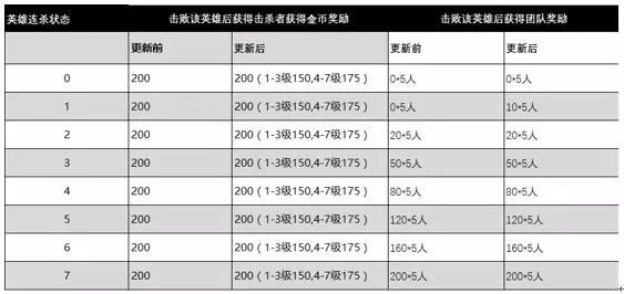 一血收益降低,现在击杀英雄的奖励和被击杀的英雄等级有关。然后英雄的经济增长也进行了一定的调整。什么意思呢?就是说,英雄们的经济成长会更快,然后一血奖励虽然降低,但是整体的经济收益却高了。也就是说,英雄发育的节奏会更快。