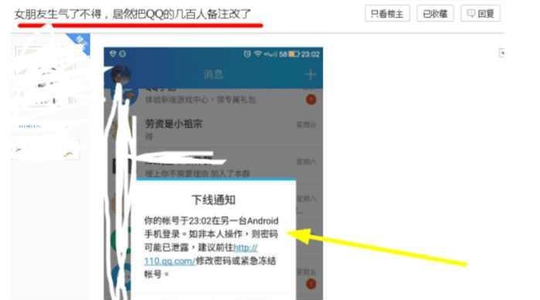这位网友表示,自己周末在家里和小伙伴们王者荣耀开黑,正是团战的金涨时刻,女友突然来电,自己二话没说就选择秒挂,不死心的女友又接连打了三个电话,都被这位小伙子给挂掉了,毕竟团战的时候不能坑队友啊。然而当打完游戏后,发现自己的QQ已经被别人顶了上去,如今再次登陆却彻底傻眼了。