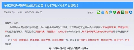 王者荣耀官方表示会以每日收集、每日查封、定期公示等形式对游戏内破坏游戏环境及影响对局公平性的行为进行严厉惩处!对于代练、挂机、辱骂等破坏公平性的行为,严重违反的玩家将会被封号365天,惩罚力度非常大。