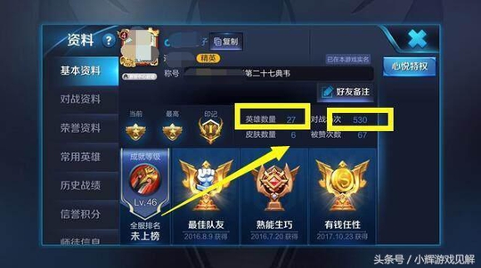 终于在530场次的时候,上了王者,可以看到玩家的实力确实不错,多少玩家几千场都未上王者,而这位玩家530场就上王者,不是一般玩家可以做到的,而且英雄也只有可怜的27个。