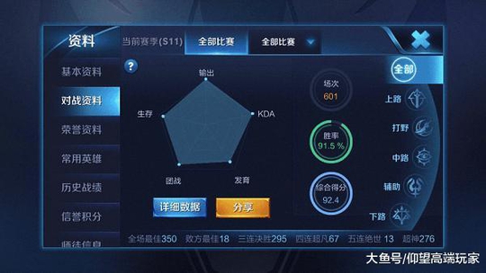 要我说的话,简直吓个半死!还好我不开其他区的号!玩家这下不高兴了,表示不服气,为什么我自己不够优秀呢?可见玩家的实力也是不错的,打了601总局数,胜率高达91%。也许是玩家刷的不够多,长时间就慢慢有了。