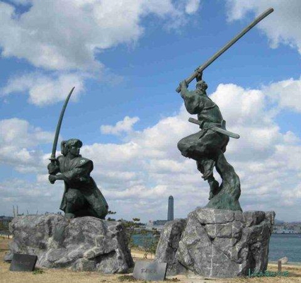 ↑日本人为纪念严流岛一战塑造的雕像,宫本武藏并没有使用二刀↑