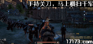 说完了太刀,咱们再来说说关刀:《战意》中的关刀,最大的特点就是势大力沉,劈砍威猛,仿佛关二爷神威附体,千军万马亦不可挡。