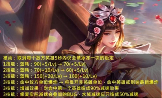 甄姬这一次全面加强了,全技能的蓝耗都给下调了,被动也被更换了,而且其大招在打到对面英雄后悔爆炸和减速了!这个可不得了,无论是追对面还是跑路都有极好的效果。