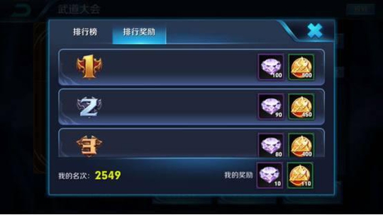 在武道大会中设立对应的防御阵容,以守住自己的名次,一次成功长期有收益。。武道大会排名越高奖励越多,第一名奖励100砖石和500武道币,第二名奖励90砖石和450武道币。前10名以内都有50砖石和200武道币以上的奖励。如果运作得到可以很快积累砖石和符文,毕竟这是每天都发放的奖励