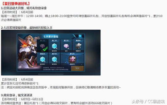 6.9~6.11期间登录,送夏日礼包,有概率开出666铭文碎片。