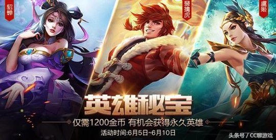 1200金币购买一个宝箱,有一定概率开出永久英雄:虞姬、貂蝉、裴擒虎。